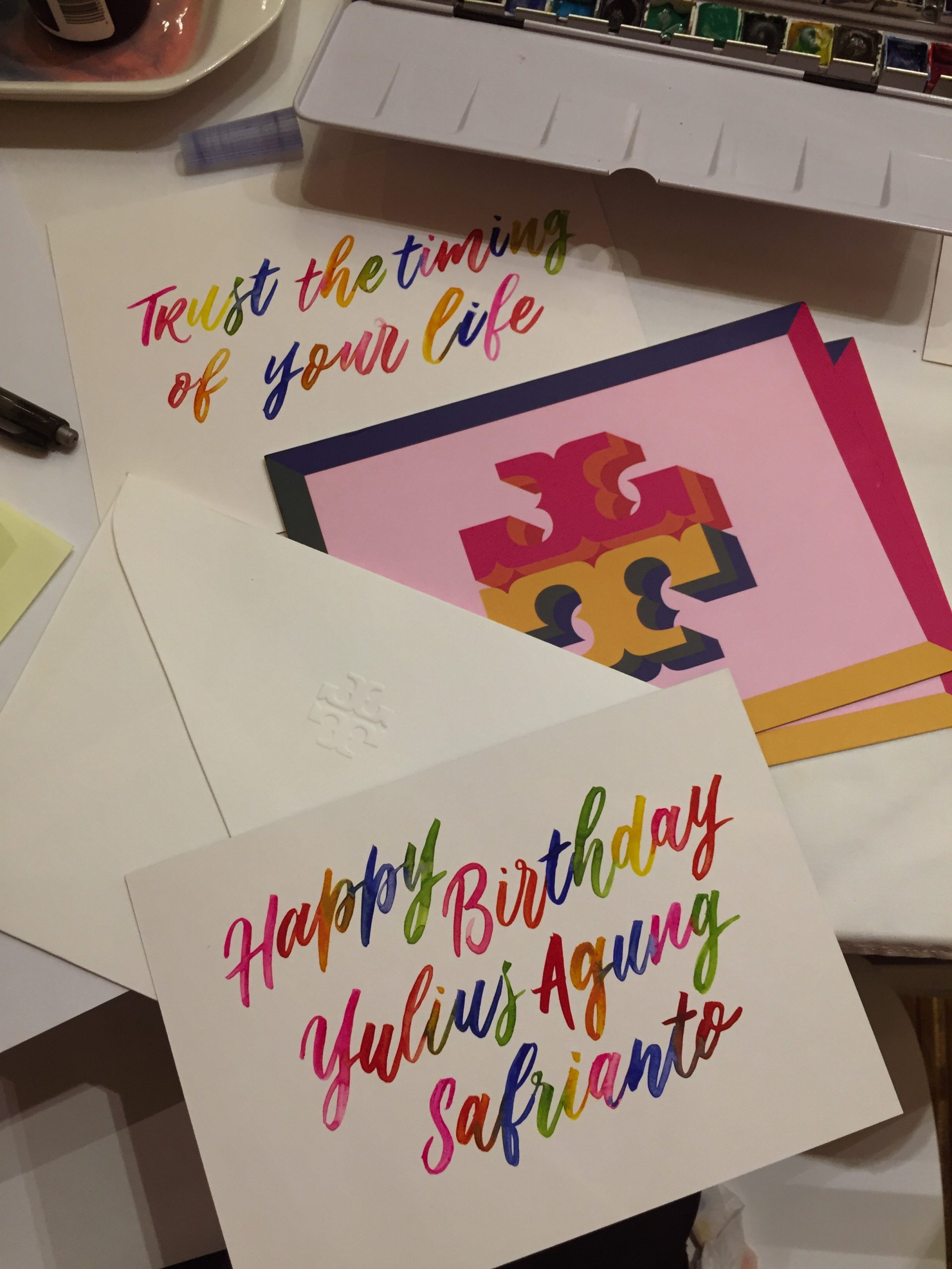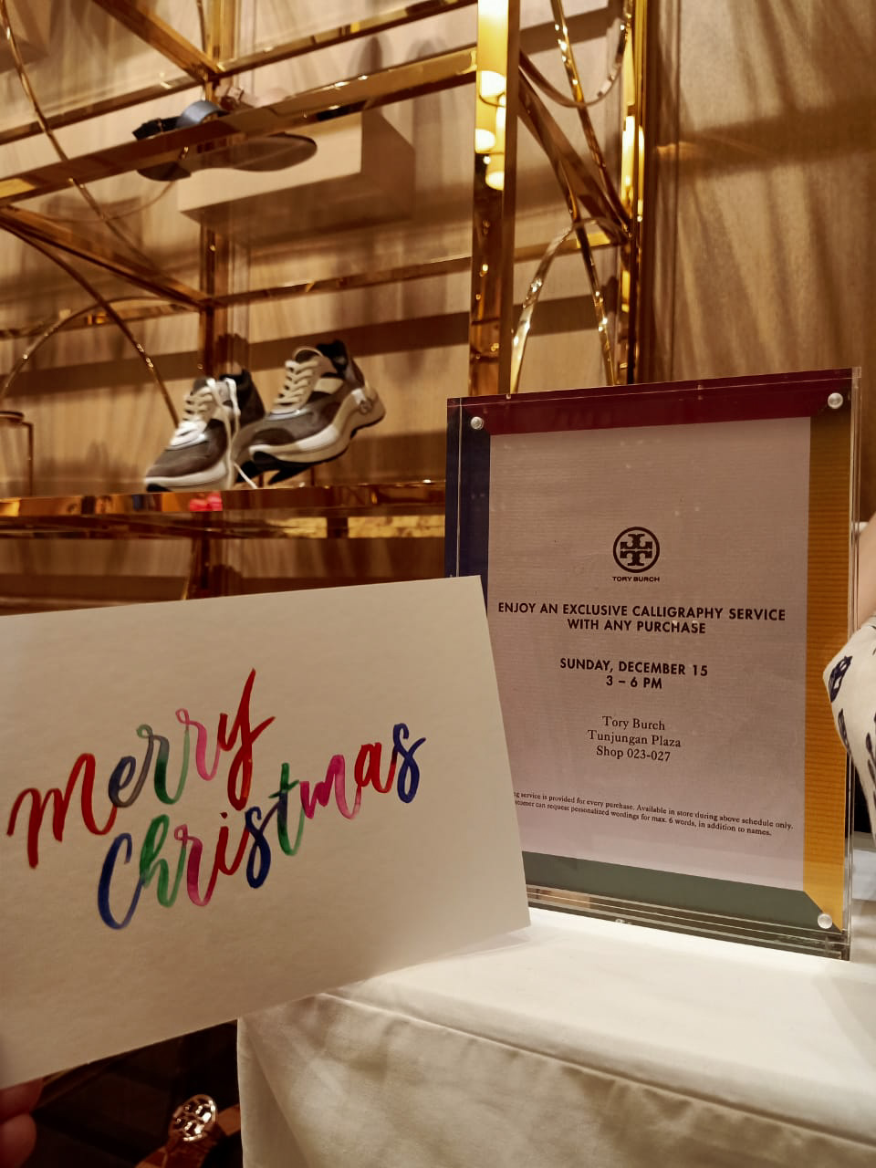 Throwback to our live writing event for Tory Burch Tunjungan Plaza back in Dec 2019. To match with the theme, we were requested to do colorful lettering for guests as a free complimentary alongside with their purchases. We had so much fun!