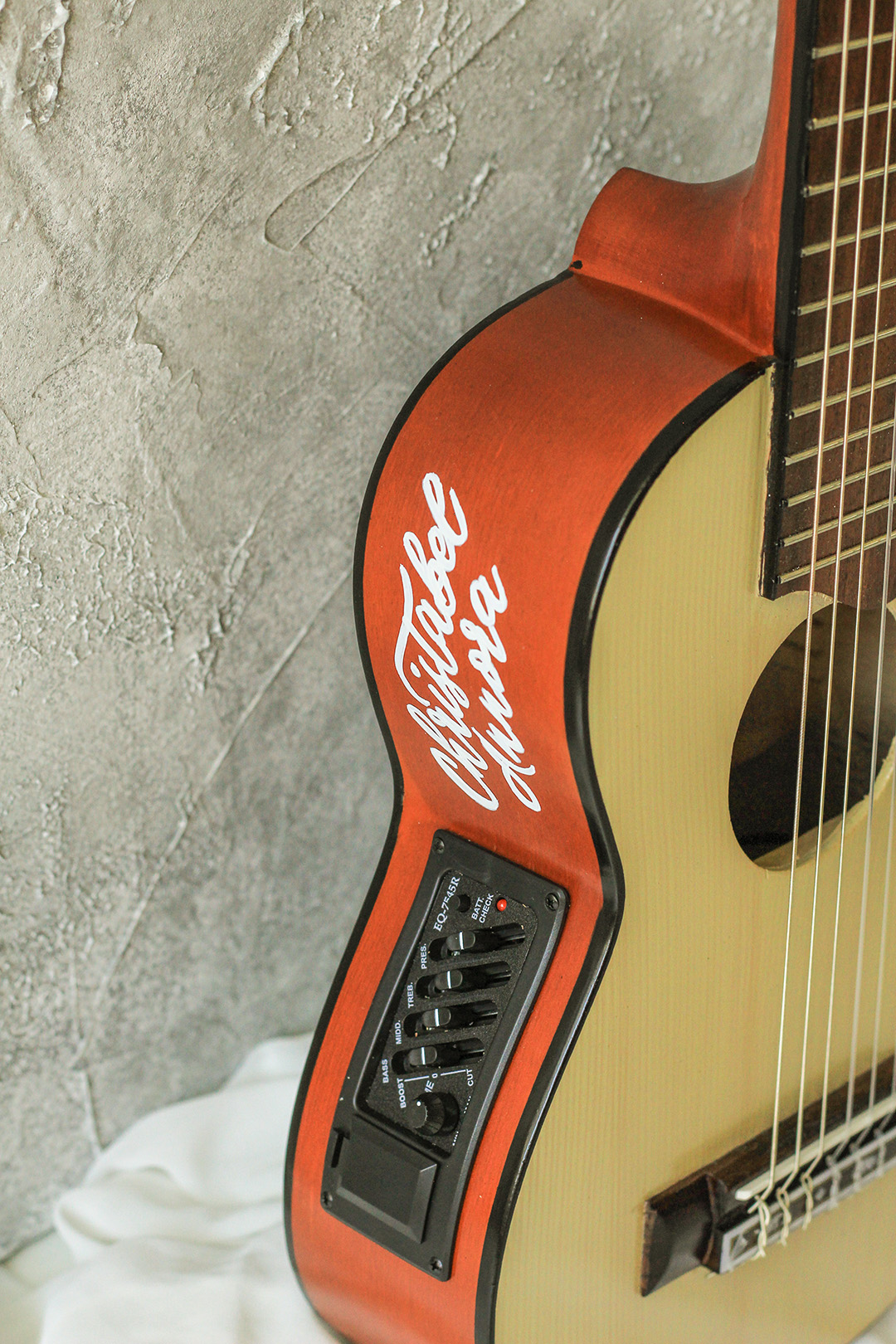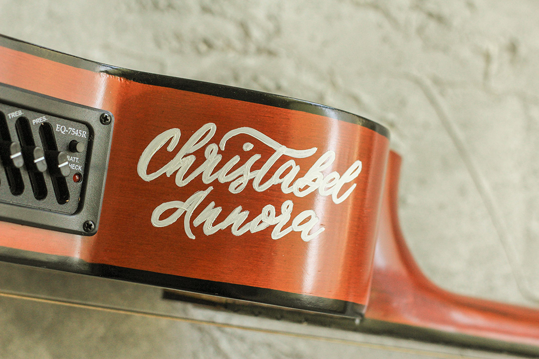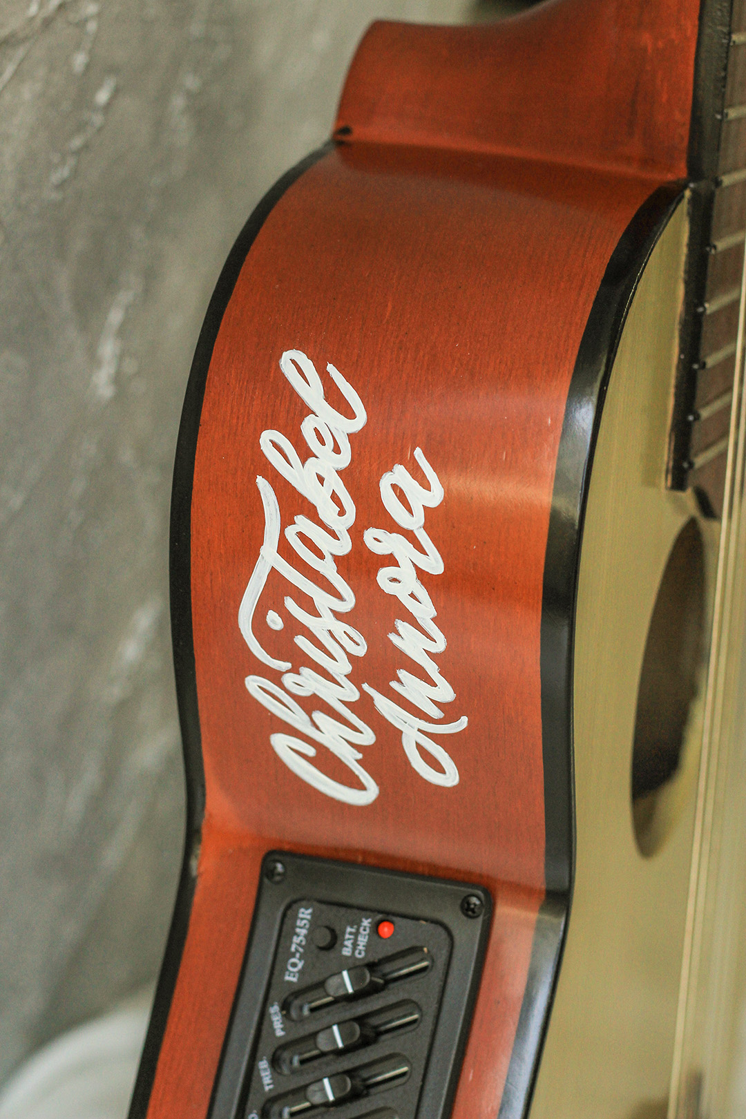 This one is requested by my friend, Bintang, as a gift for Ms. Christabel Annora. Writing on a different surface always brings us joy! And this time we are honored to do custom lettering on Guitalele / Mini Guitar just for the beloved Christabel Annora.
