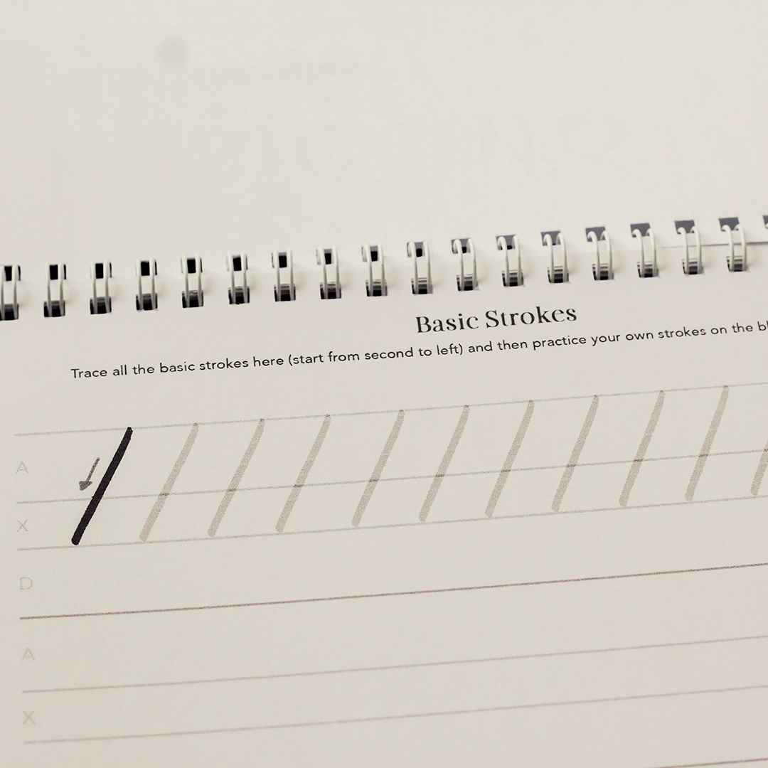 – Brush Practice Book with blank guidelines to continue your practice