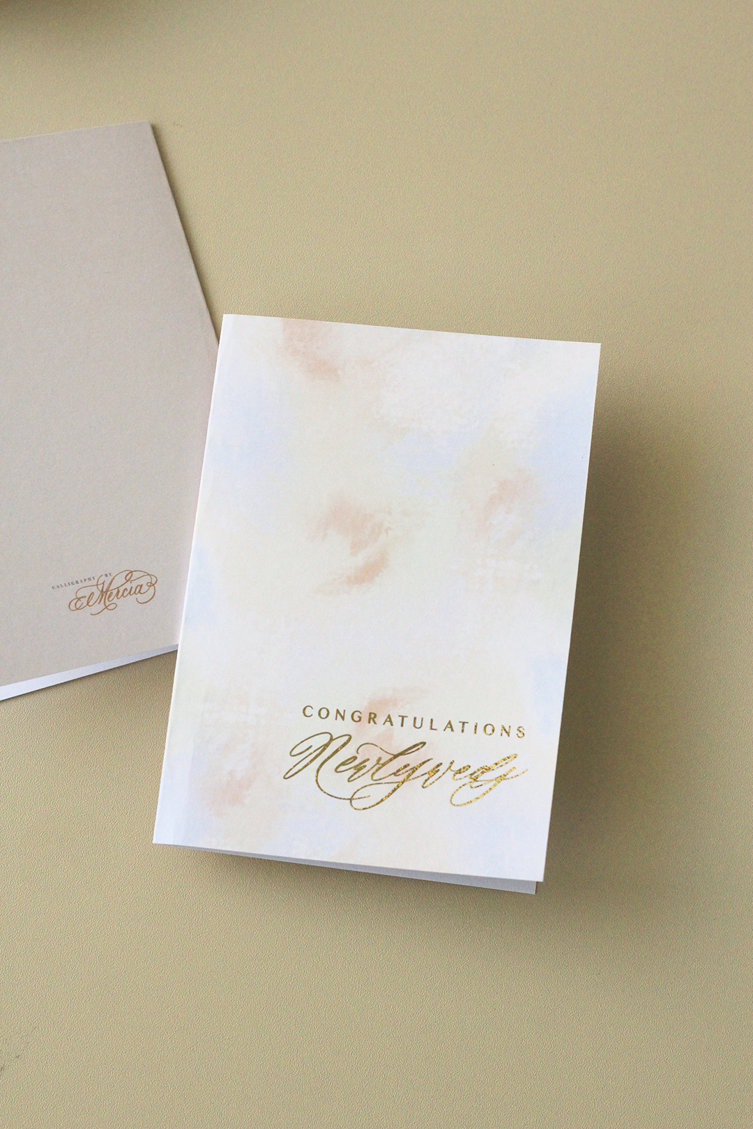 Designed with soft tone colors beautifully and gold hot print finishing, makes it perfect for your choice of elegant classy greeting card. Pair our card with goods to enhance your wedding gift into perfection.