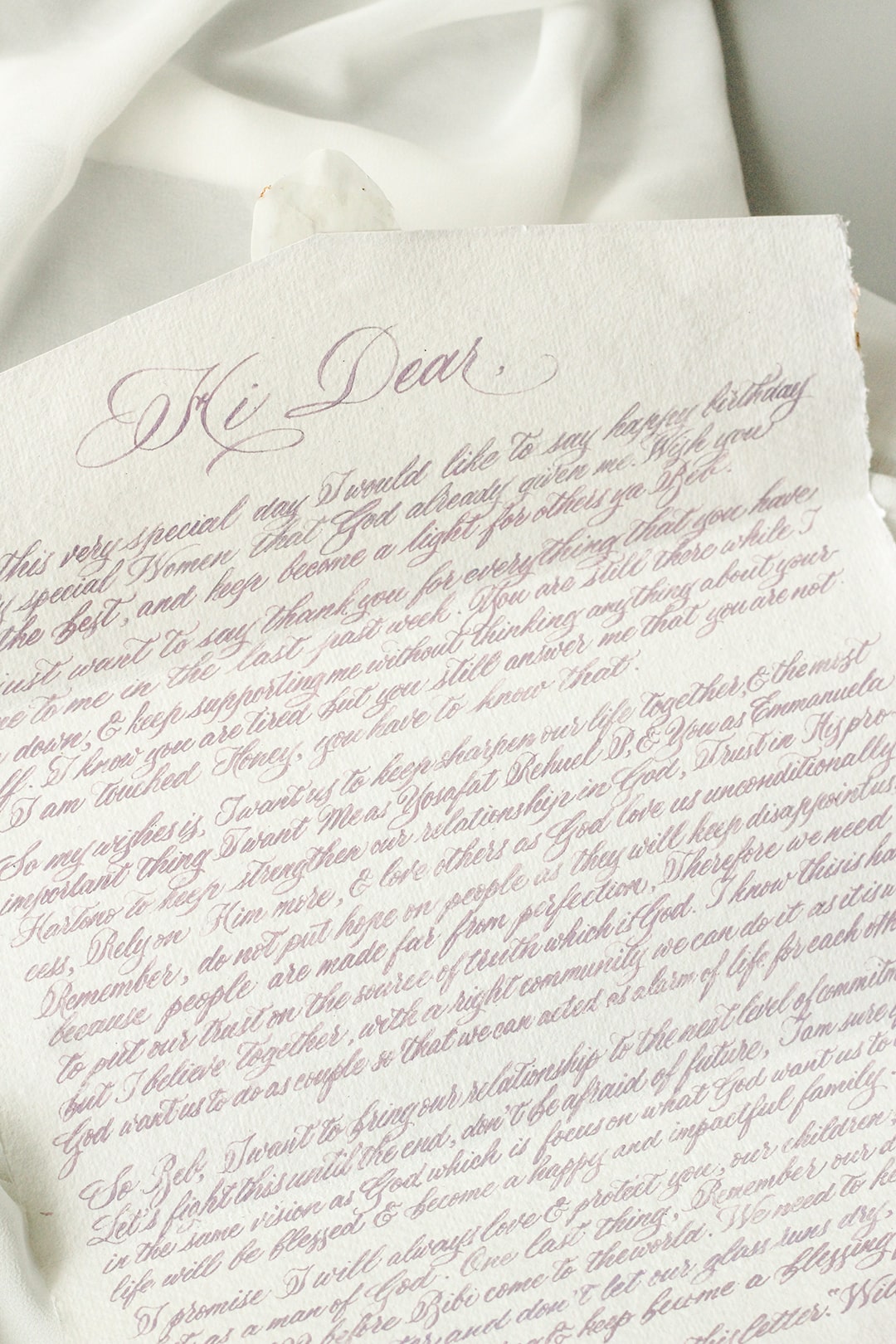 This one is a proposal letter, requested by the groom-to-be to his soon to be wife for the special day before they are officially engaged. It’s a long & thoughtful letter about their beautiful relationship before the guy dodged the bullet by asking the most life changing question : “Will you marry me?”